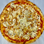 Med tomat, ost, Kylling, champignon og gorgonzola