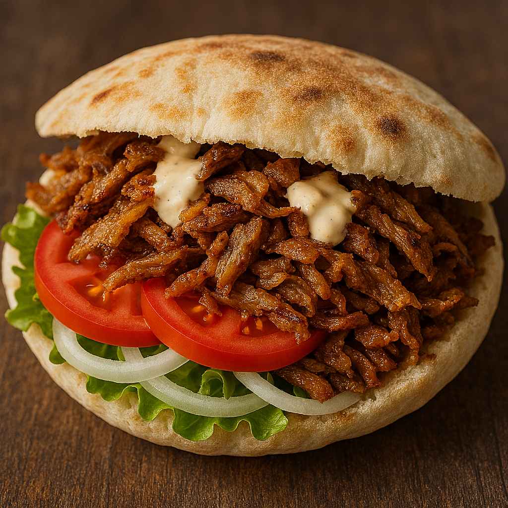 Med Shawarm,Kylling, Skinke, Falfal, æg eller tun tomat, ost, salat og dressing