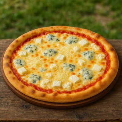 Med tomat, ost, Kylling, champignon, løg og chili