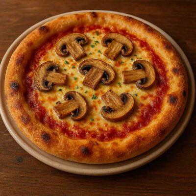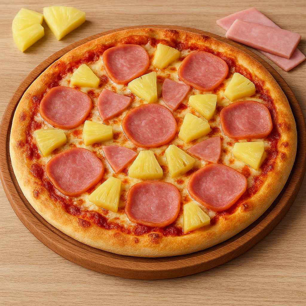 Med tomat, ost, Skinke, pepperoni, paprika, kylling og hvidløg
