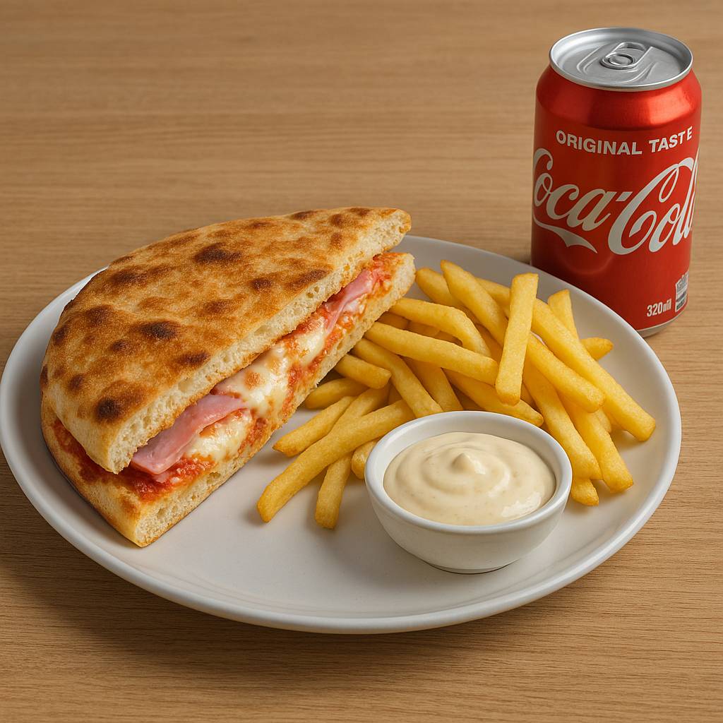 Shawarma inkl. pommes frites, dip og dåse 0.33L sodavand